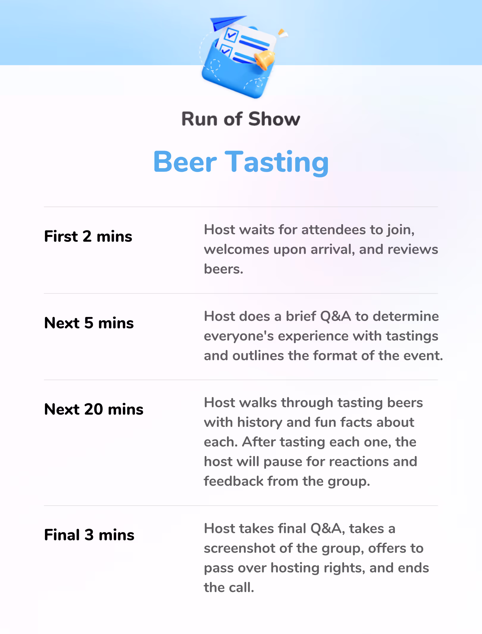 Experience a full 60-minute class with time for engagement and Q&A. Our instructor will provide an in-depth and varied tasting of all 4 beers from your kit. See the run of show.