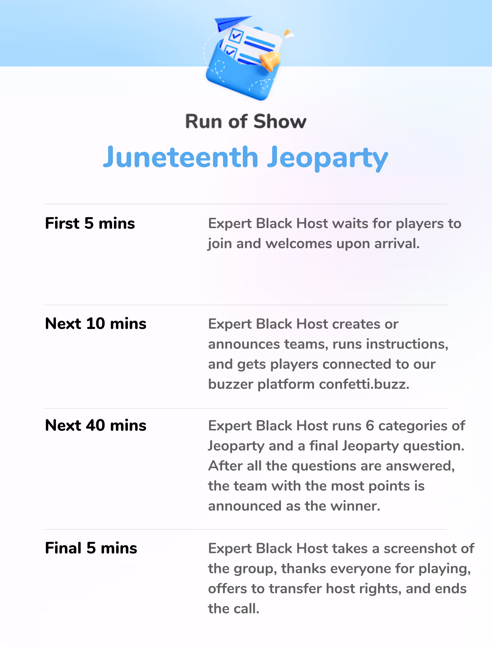 ✍️ Note: There is only one version of this game board. If you have played Junenteeth Jeoparty before, please consider another experience.