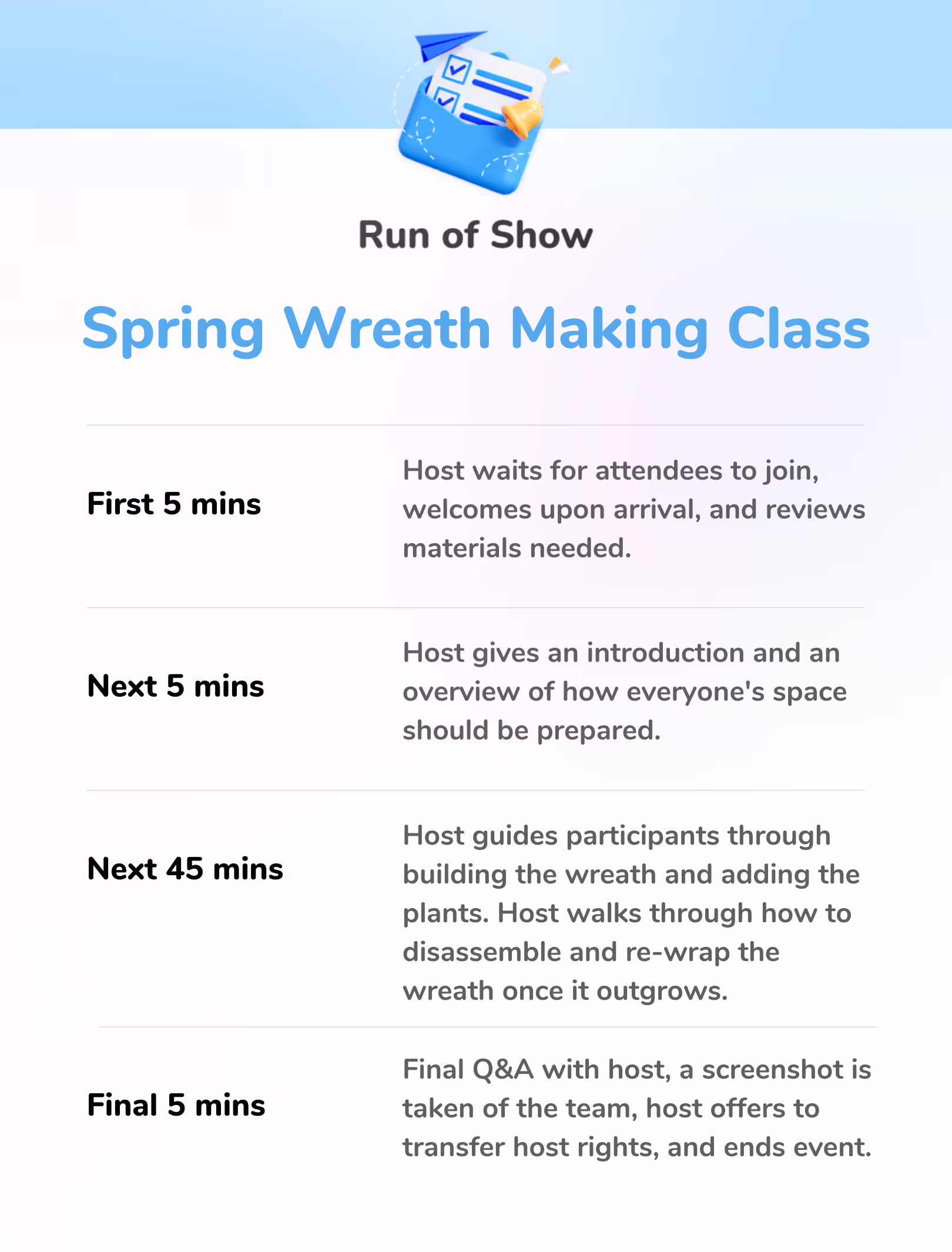 By the end of class, you'll have a beautiful spring wreath to display in your home or office. Plus, you’ll learn wreath making skills that you can use to create your own festive and floral arrangements all year round!